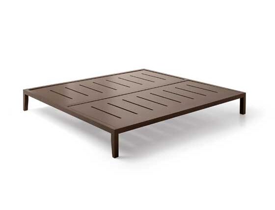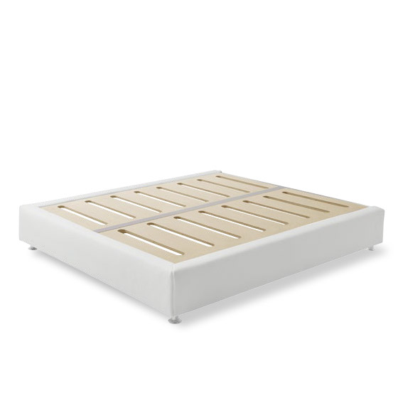 Fully removable aluminum base with powder coated finish, Silver color. Orthopedic platform in pantographed birch plywood to allow ventilation, 16 mm thick, natural finish. Plexiglass feet.