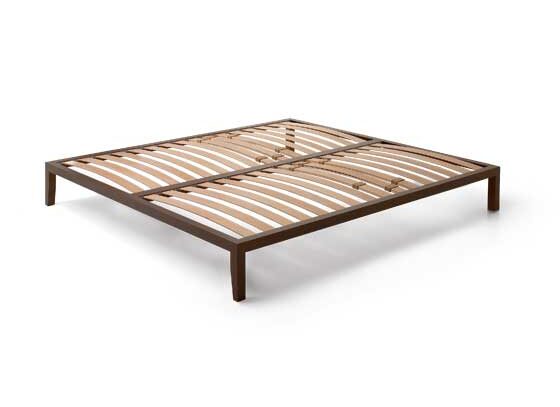 Frame with beech slats and firmness adjusters or orthopaedic base in pantographed poplar plywood to allow ventilation, 18 mm thick.